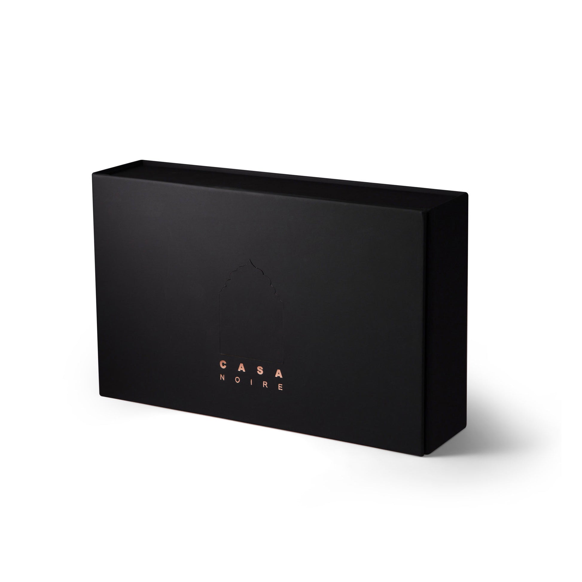 Vår lyxiga Casa Noire gåvobox innehåller 3 olika skäggoljor och en lyxig graverad svart skäggkam i trä i ett konstläderfodral. Våra skäggoljor är gjorda med naturliga ingredienser med bland annat arganolja, sesamolja och svartkumminolja; en lyxig blandning som ger skägget näring och stärker det. Oljan ger ditt skägg en oemotståndlig lyxig och mystisk doft och håller det friskt, glänsande, starkt och skyddat från skadlig UV-strålning och värme.